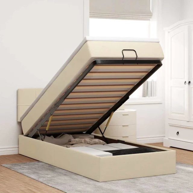 vidaXL Otomanska postelja z vzmetnico krem 100x200 cm blago