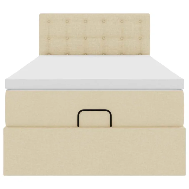 vidaXL Otomanska postelja z vzmetnico krem 100x200 cm blago
