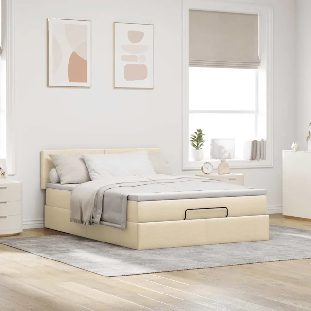 vidaXL Otomanska postelja z vzmetnico krem 140x200 cm blago