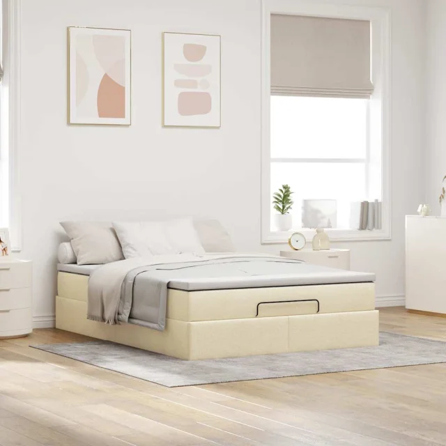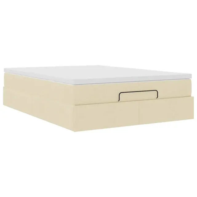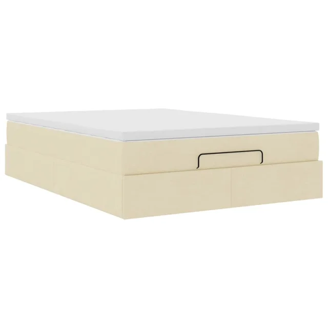 vidaXL Otomanska postelja z vzmetnico krem 140x200 cm blago