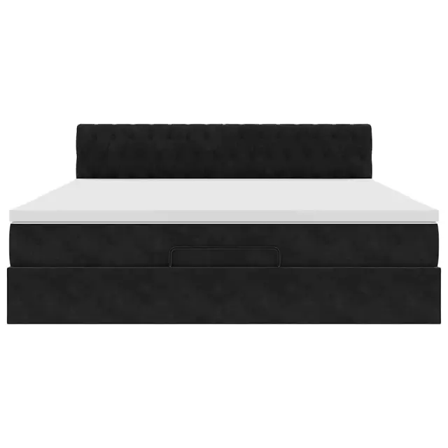 vidaXL Otomanska postelja z vzmetnico & LED črna 160x200cm žamet