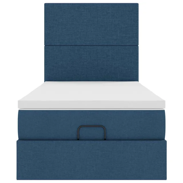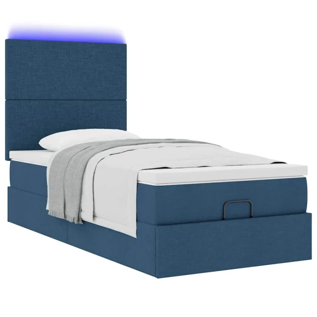 vidaXL Otomanska postelja z vzmetnico & LED modra 100x200 cm Tkanina