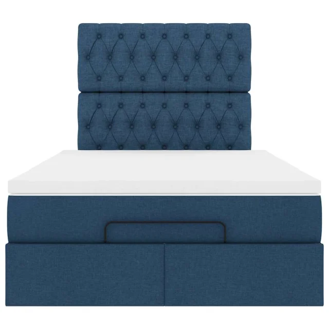 vidaXL Otomanska postelja z vzmetnico & LED modra 120x200 cm Tkanina