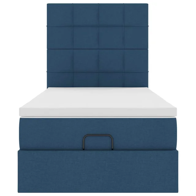 vidaXL Otomanska postelja z vzmetnico & LED modra 90x200 cm Tkanina