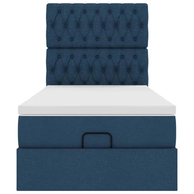 vidaXL Otomanska postelja z vzmetnico & LED modra 90x200 cm Tkanina