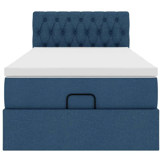 vidaXL Otomanska postelja z vzmetnico & LED modra 90x200 cm Tkanina