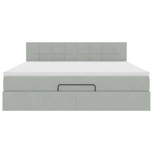 vidaXL Otomanska postelja z vzmetnico & LED Svetlo siva 160x200cm