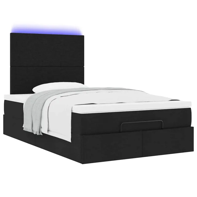 vidaXL Otomanska postelja z vzmetnico & LEDs črna 120x190 cm blago