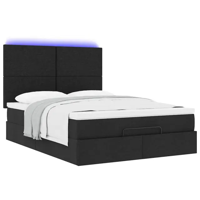 vidaXL Otomanska postelja z vzmetnico & LEDs črna 140x190 cm