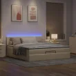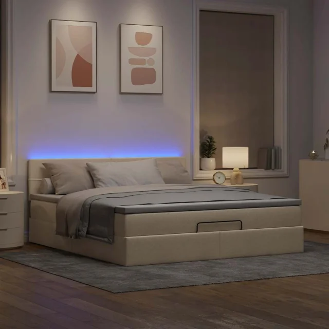 vidaXL Otomanska postelja z vzmetnico & LEDs krema 180x200 cm blago
