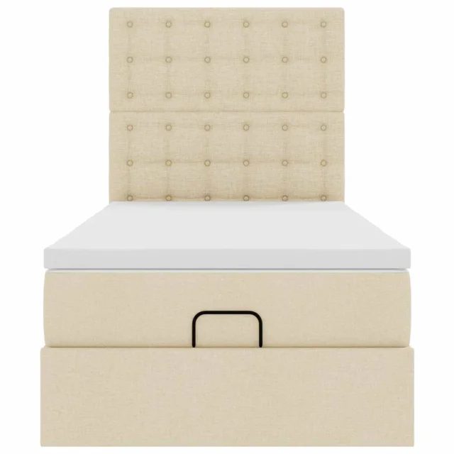 vidaXL Otomanska postelja z vzmetnico & LEDs krema 90x200 cm blago