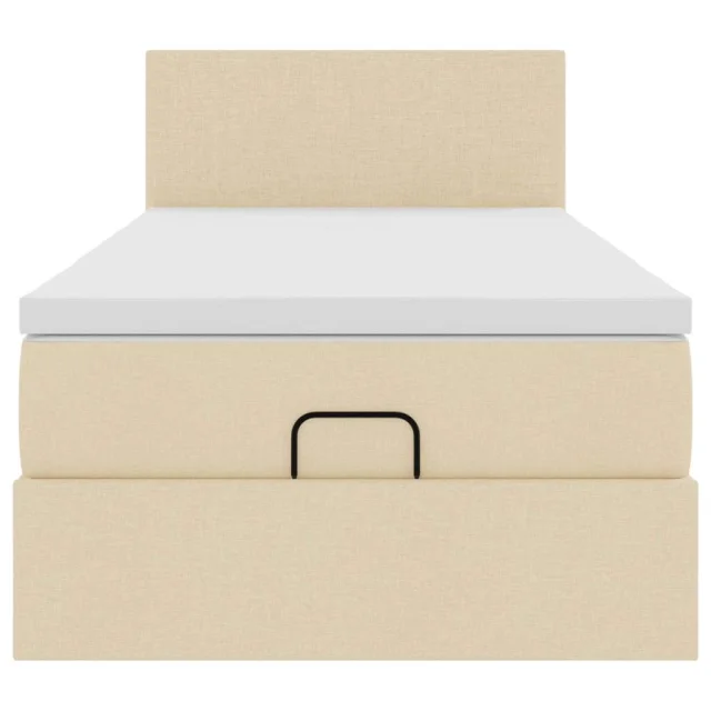 vidaXL Otomanska postelja z vzmetnico & LEDs krema 90x200 cm blago