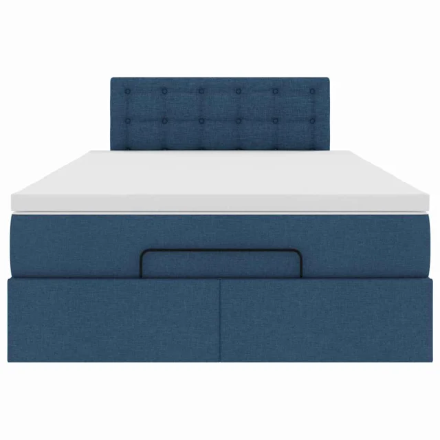 vidaXL Otomanska postelja z vzmetnico & LEDs modra 120x190 cm blago