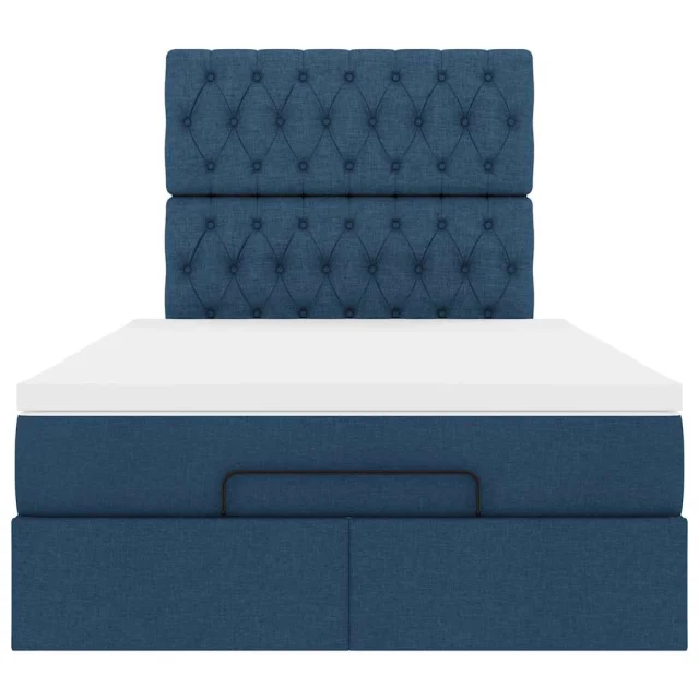 vidaXL Otomanska postelja z vzmetnico & LEDs modra 120x190 cm blago