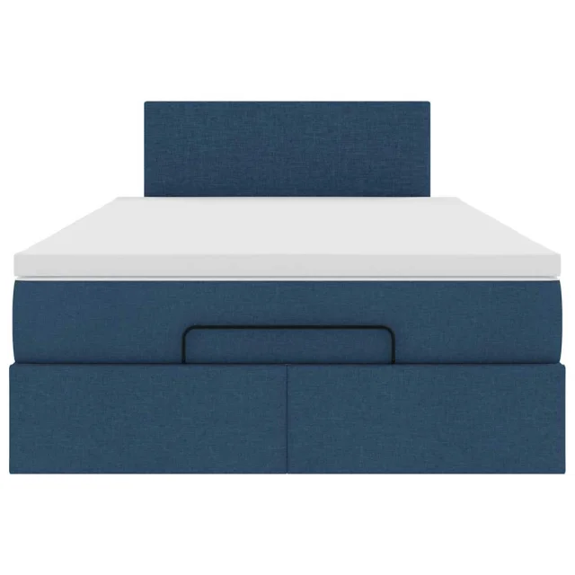 vidaXL Otomanska postelja z vzmetnico & LEDs modra 120x190 cm blago
