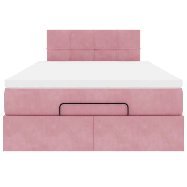 vidaXL Otomanska postelja z vzmetnico & LEDs roza 120x190cm žamet