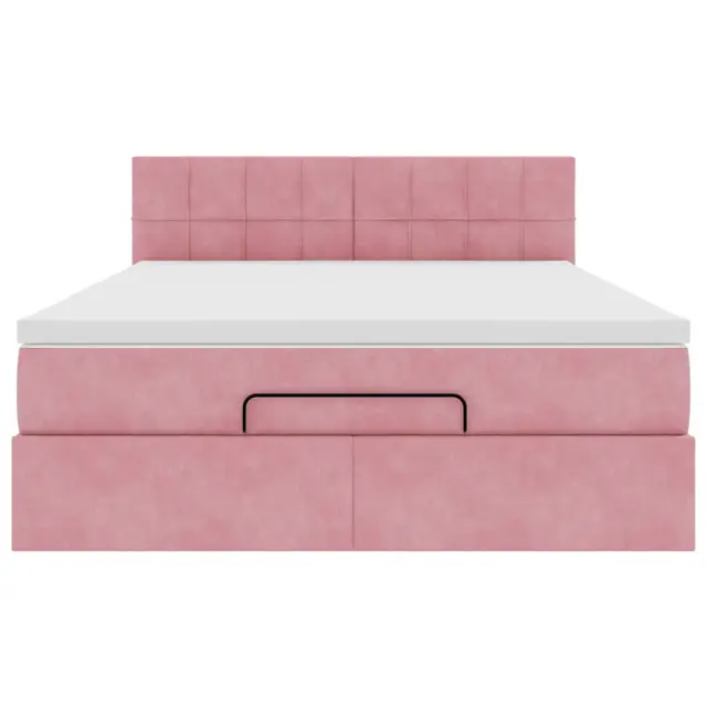 vidaXL Otomanska postelja z vzmetnico & LEDs roza 140x200cm žamet