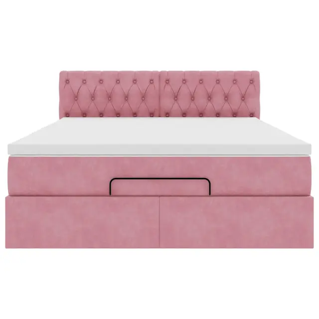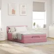 vidaXL Otomanska postelja z vzmetnico & LEDs roza 140x200cm žamet