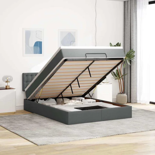 Ta postelja z omizjem brezhibno združuje sodobno estetiko in praktično funkcionalnost ter vam ponuja rešitev za shranjevanje in udobno spanje.