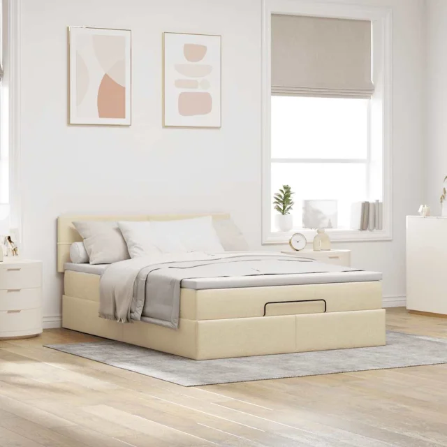 vidaXL Otomanska postelja z vzmetnico & LEDs smetana 140x190 cm