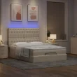 vidaXL Otomanska postelja z vzmetnico & LEDs smetana 140x190 cm