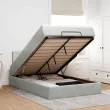 • Veliko prostora za shranjevanje pod posteljo: Zahvaljujoč hidravličnemu dvižnemu mehanizmu je pod posteljnim okvirjem na voljo veliko prostora za shranjevanje pod posteljo, kar povečuje prostor, ne da bi zavzemal dodatno talno površino. S preprostim potegom ročaja se podnožje z letvami gladko dvigne, tako da lahko hitro in brez napora poberete svoje predmete.