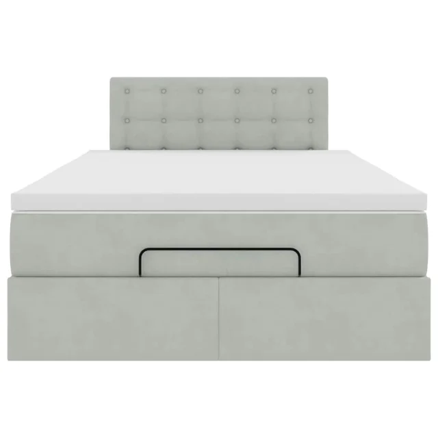 vidaXL Otomanska postelja z vzmetnico&LEDs svetlo siva 120x190cm žamet
