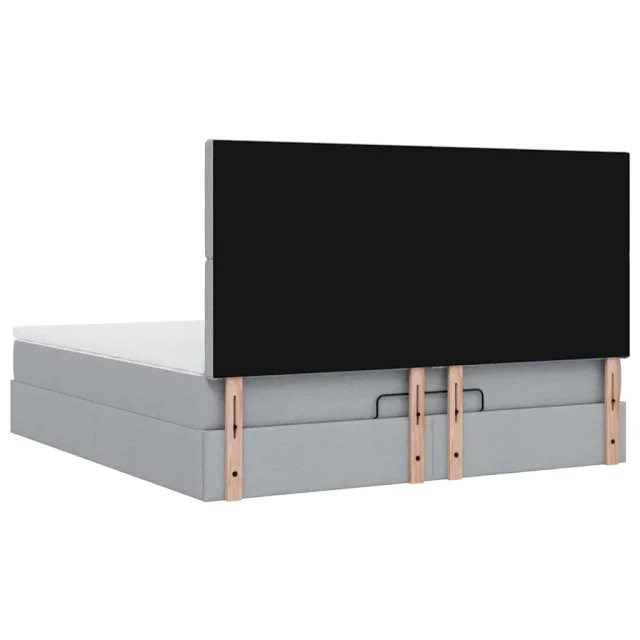 vidaXL Otomanska postelja z vzmetnico&LEDs svetlo siva 180x200cm blago