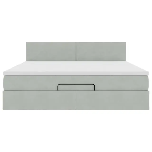 vidaXL Otomanska postelja z vzmetnico&LEDs svetlo siva 180x200cm žamet