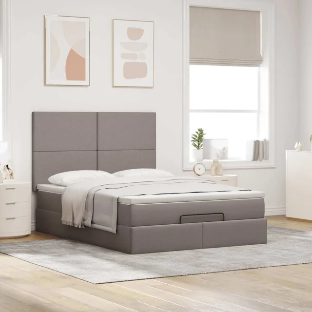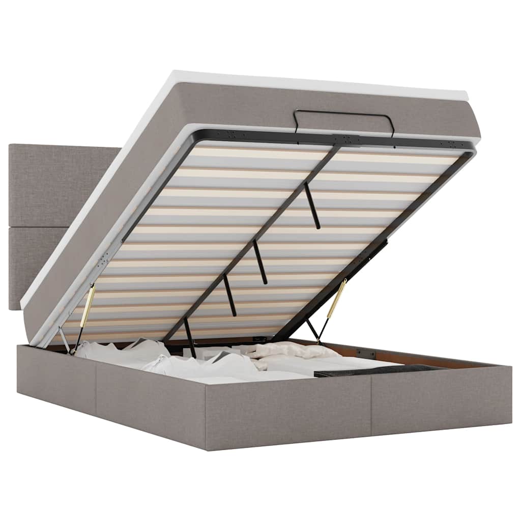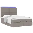 vidaXL Otomanska postelja z vzmetnico & LEDs taupe 140x200 cm blago