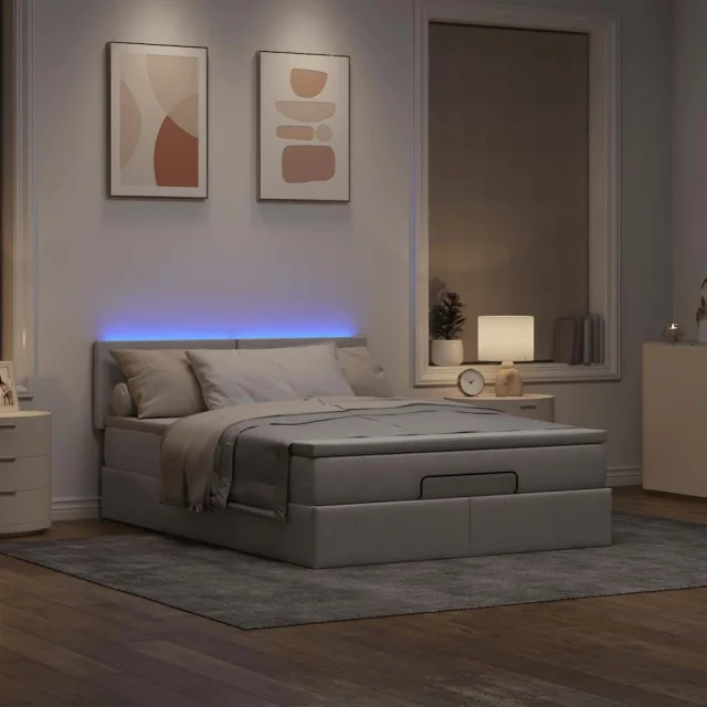 vidaXL Otomanska postelja z vzmetnico & LEDs taupe 140x200 cm blago
