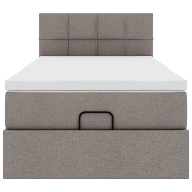 vidaXL Otomanska postelja z vzmetnico & LEDs taupe 90x200 cm blago