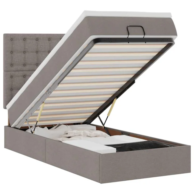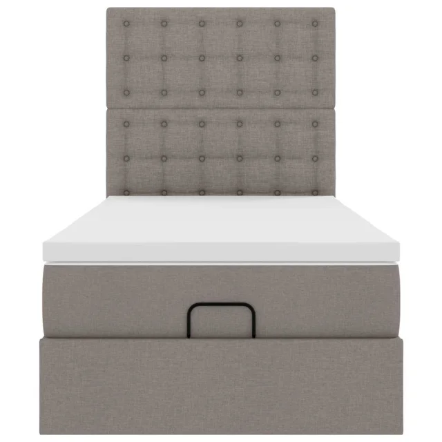 vidaXL Otomanska postelja z vzmetnico & LEDs taupe 90x200 cm blago