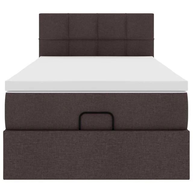 vidaXL Otomanska postelja z vzmetnico & LEDs temno rjava 90x200 cm