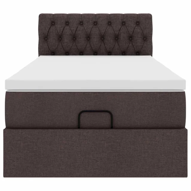 vidaXL Otomanska postelja z vzmetnico & LEDs temno rjava 90x200 cm
