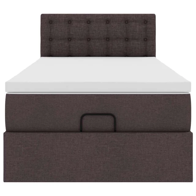 vidaXL Otomanska postelja z vzmetnico & LEDs temno rjava 90x200 cm
