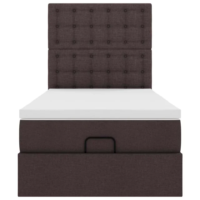 vidaXL Otomanska postelja z vzmetnico & LEDs temno rjava 90x200 cm