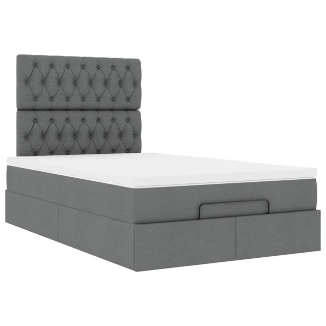 vidaXL Otomanska postelja z vzmetnico & LEDs temno siva 120x190 cm