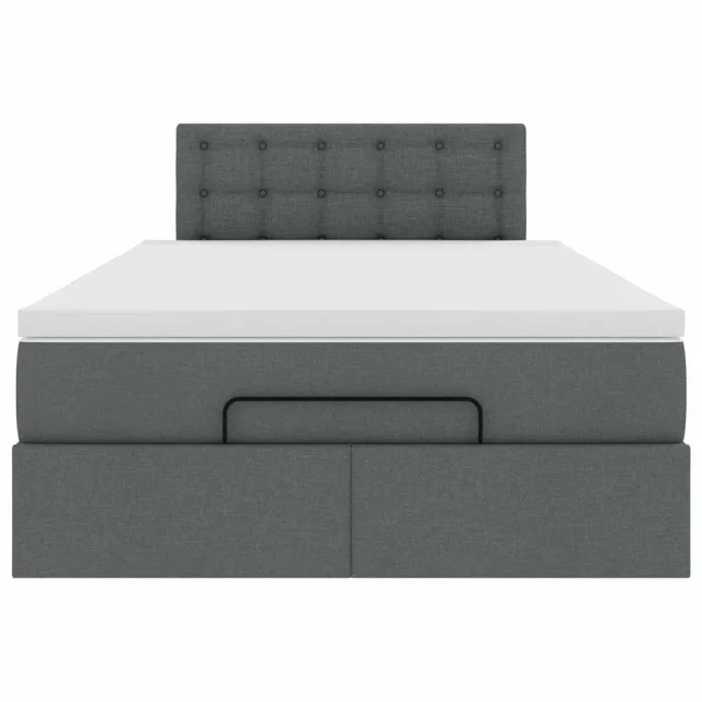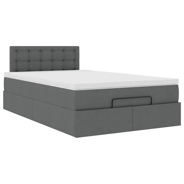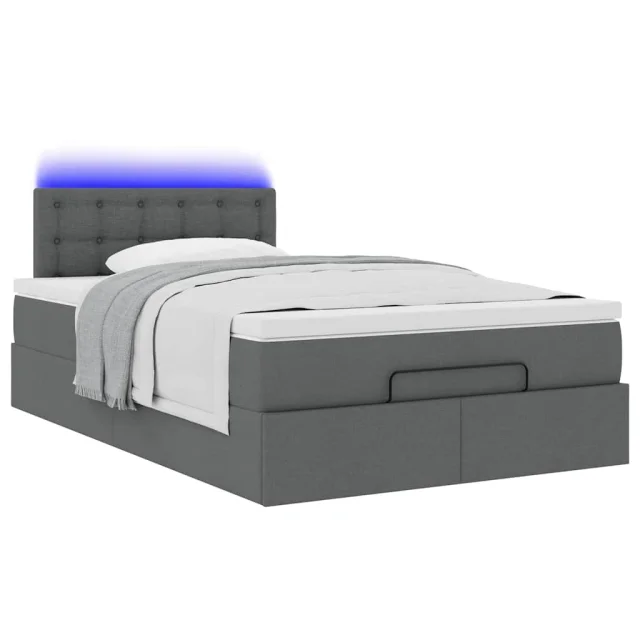 vidaXL Otomanska postelja z vzmetnico & LEDs temno siva 120x200 cm