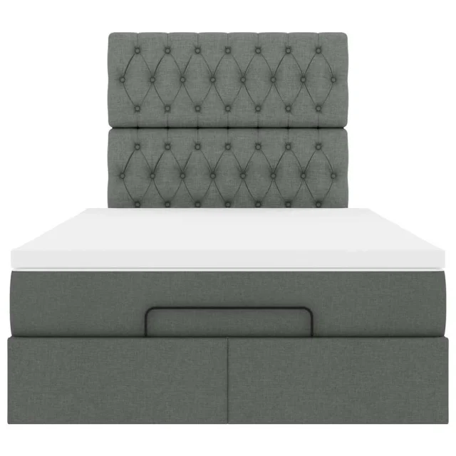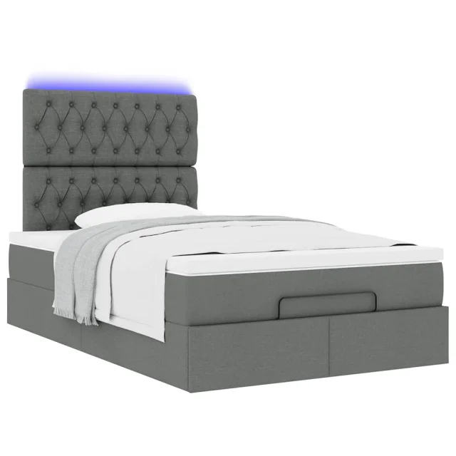 vidaXL Otomanska postelja z vzmetnico & LEDs temno siva 120x200 cm