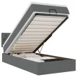 • Veliko prostora za shranjevanje pod posteljo: Zahvaljujoč hidravličnemu dvižnemu mehanizmu je pod posteljnim okvirjem na voljo veliko prostora za shranjevanje pod posteljo, kar povečuje prostor, ne da bi zavzemal dodatno talno površino. S preprostim potegom ročaja se podnožje z letvami gladko dvigne, tako da lahko hitro in brez napora poberete svoje predmete.