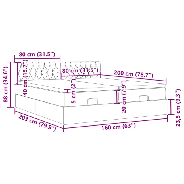 • Dimenzije: 203 x 80 x 78/88 cm (D x Š x V)