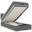 • Veliko prostora za shranjevanje pod posteljo: Zahvaljujoč hidravličnemu dvižnemu mehanizmu je pod posteljnim okvirjem na voljo veliko prostora za shranjevanje pod posteljo, kar povečuje prostor, ne da bi zavzemal dodatno talno površino. S preprostim potegom ročaja se podnožje z letvami gladko dvigne, tako da lahko hitro in brez napora poberete svoje predmete.