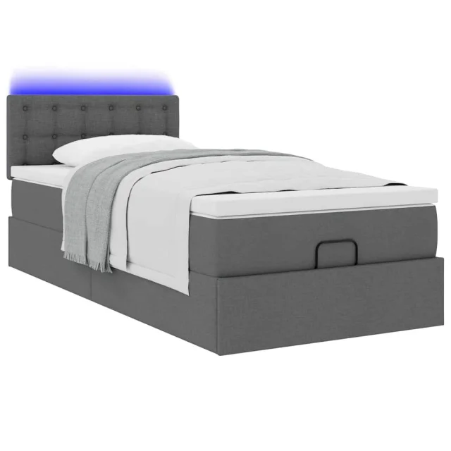vidaXL Otomanska postelja z vzmetnico & LEDs temno siva 90x200 cm