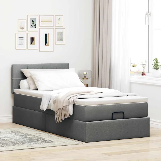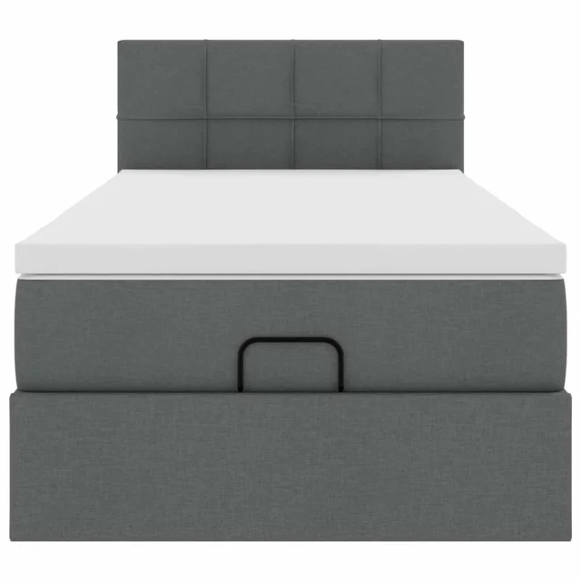 vidaXL Otomanska postelja z vzmetnico & LEDs temno siva 90x200 cm