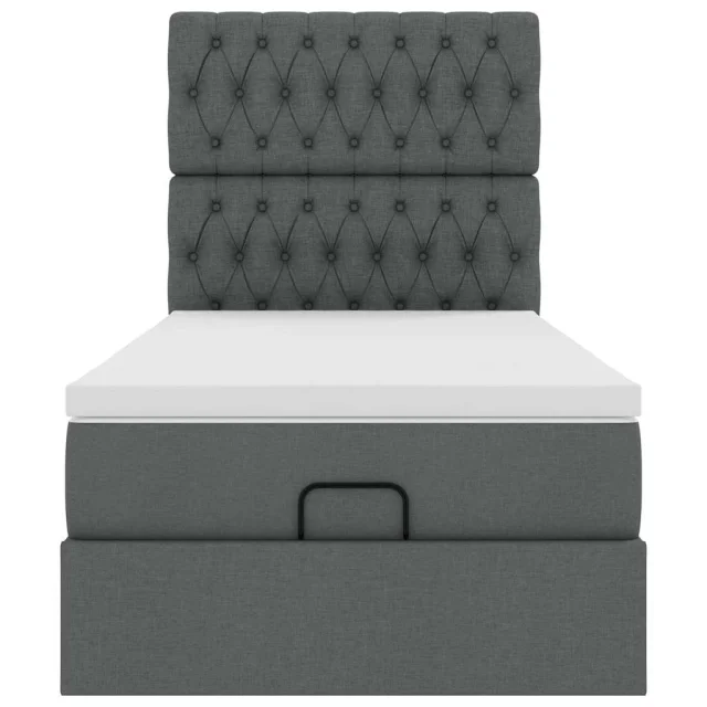 vidaXL Otomanska postelja z vzmetnico & LEDs temno siva 90x200 cm