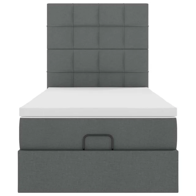 vidaXL Otomanska postelja z vzmetnico & LEDs temno siva 90x200 cm