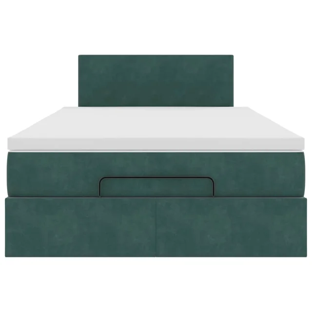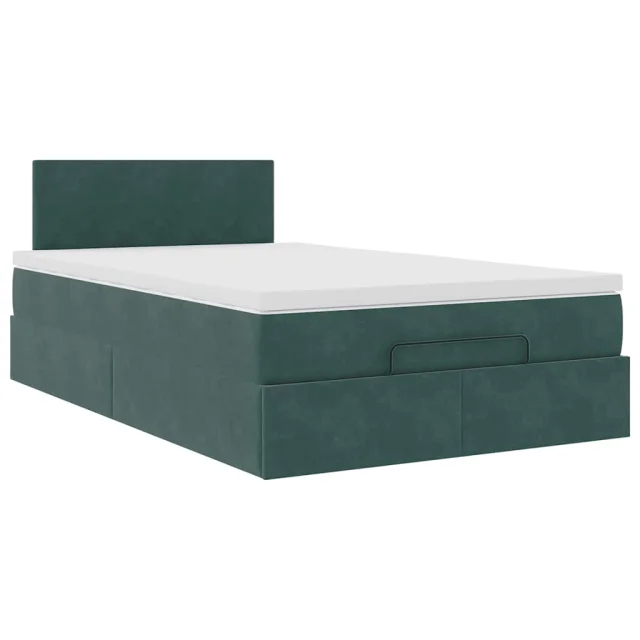 vidaXL Otomanska postelja z vzmetnico & LEDs temno zelena 120x190cm