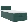 vidaXL Otomanska postelja z vzmetnico & LEDs temno zelena 90x200cm