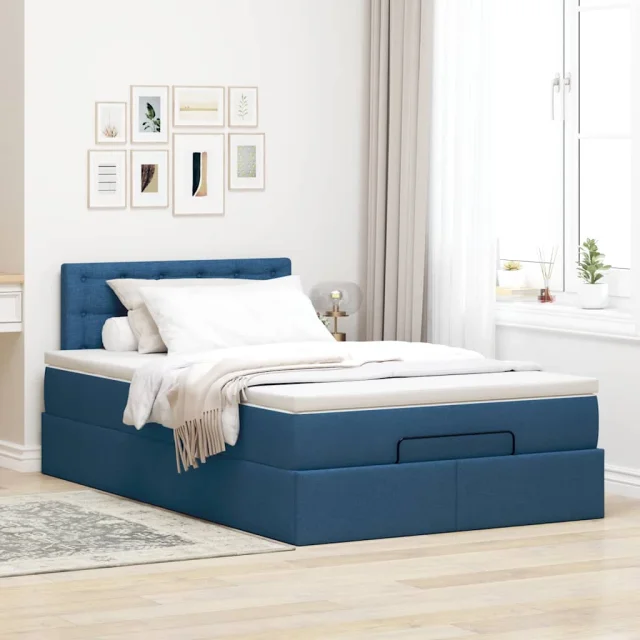 vidaXL Otomanska postelja z vzmetnico moder 120x200 cm blago
